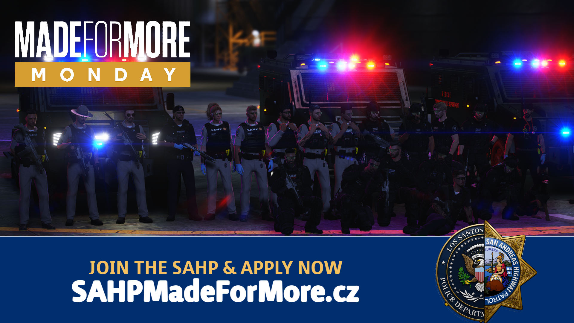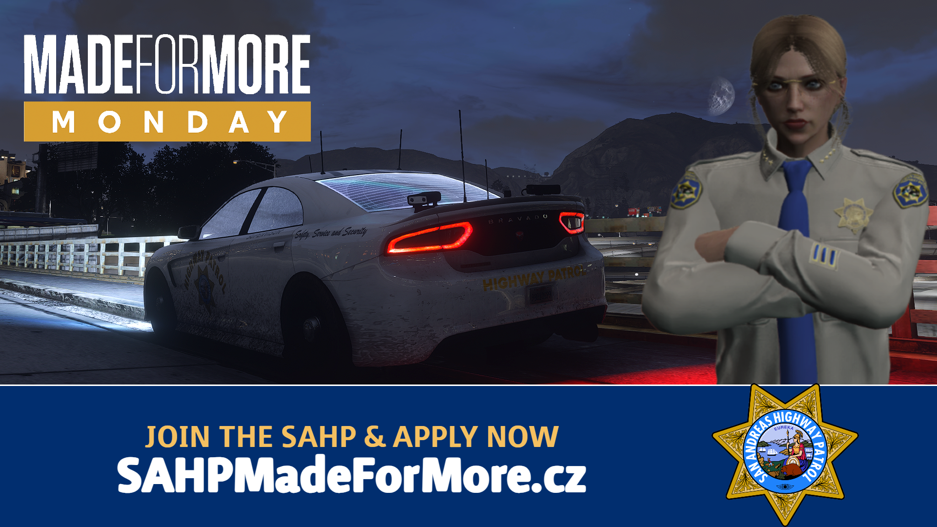 Mezinárodní den žen je příležitostí poděkovat ženám v bezpečnostních složkách za jejich profesionalitu, odvahu a každodenní službu veřejnosti. San Andreas Highway Patrol při této příležitosti oceňuje také spolupráci s kolegyněmi z LSPD, LSSD LSFD a EMS.